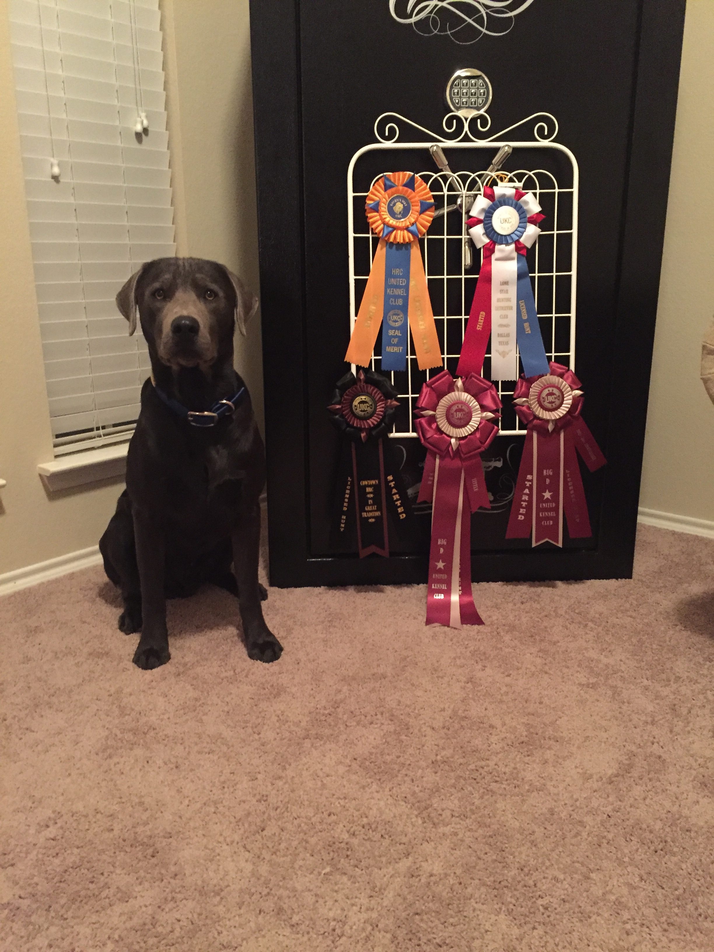 This is Drake and on October 7th, 2017 he earned his Started Hunting Retriever Title (SHR). So his official name is SHR Silver Dollar’s Drake. It’s only a matter of time before he has his Finished (HRCH) title. He has tons of drive and loves the water.